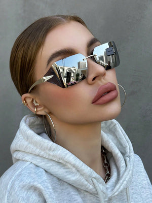 1 Pair Fashion Rimless Oversized Metal Frame Fashion Glasses, Suitable For Driving, Travel, Beach, Sports Style, Festivals, Vacation, Street, Fishing, Outdoor Activities, Party For Summer Beach Vacation,Outdoor,Travel