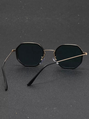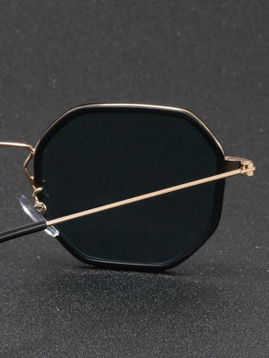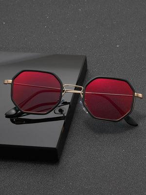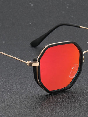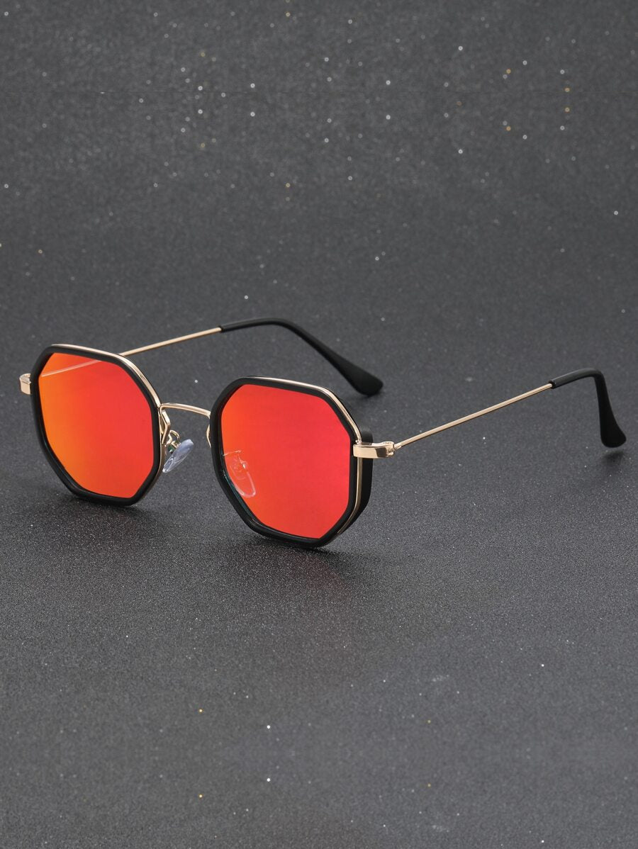 1 Pair Men's Coated Dual-Tone Metal Geometric Slim Frame Casual Fashion Glasses (Coated Lenses With Different Colors At Different Angles)