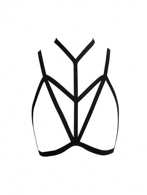 1 Pc Alluring Elastic Cage Bra Strap-Lingerie With No Cup, Hollow Design For Clubwear, Gothic Party & Halloween Accessories For Women