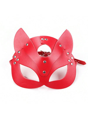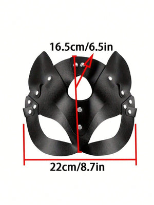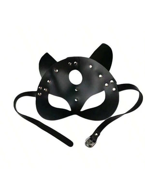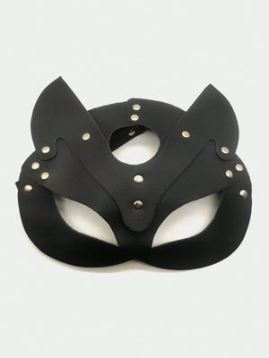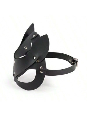 1pc Black Synthetic Leather Cat Mask With Ear Holes - Gothic Punk-Style Halloween Party, Carnival Ball And Adult Game Costume Accessories; Cat-Themed Mask; Bold And Fashionable Mask
