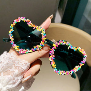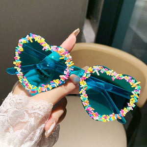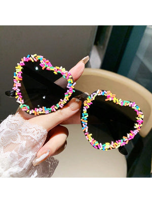 1pc Colorful Gradient Print Graphic Fashion Glasses, V-Shaped Abstract Pattern, Cute Casual Street Style, PC Lens For Beach, Travel, All Season Usage For Summer Beach Vacation,Outdoor,Travel
