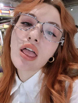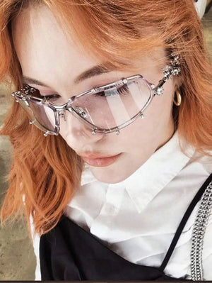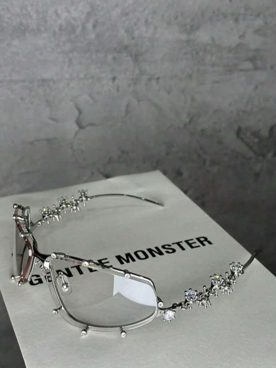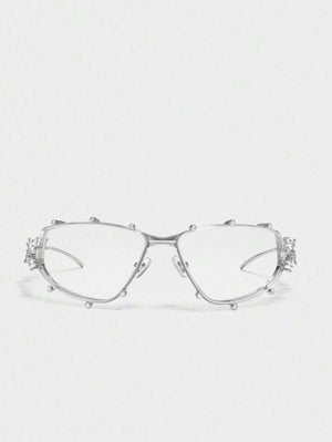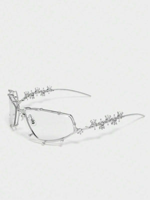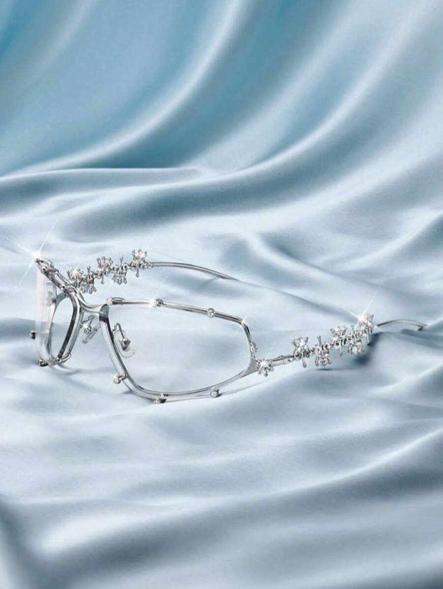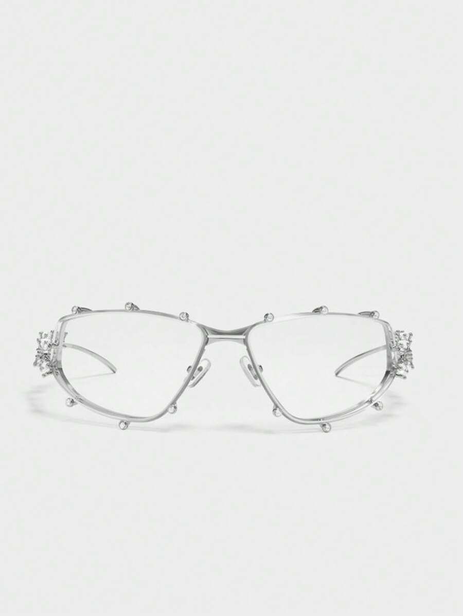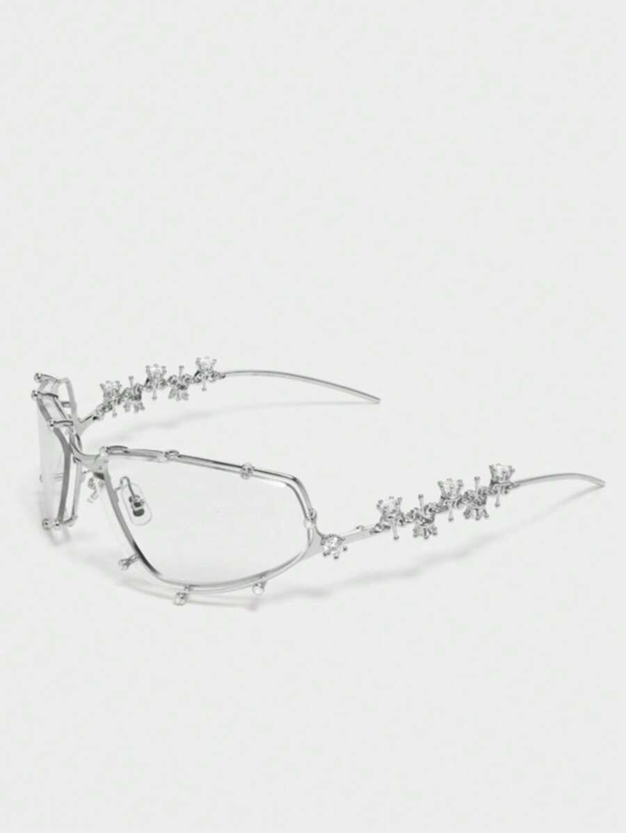 1PC Diamond Studded Silver Glasses, Elegant Rhinestone Futuristic Style, Y2K Fashion Style, Photography And Beach Accessories For Summer Beach Vacation,Outdoor,Travel