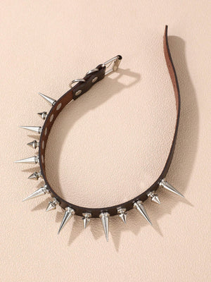 1pc Gothic Punk Rock Spiked Leather Necklace Choker