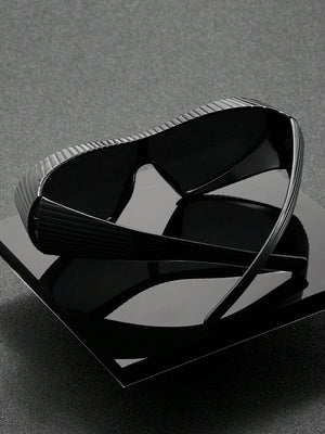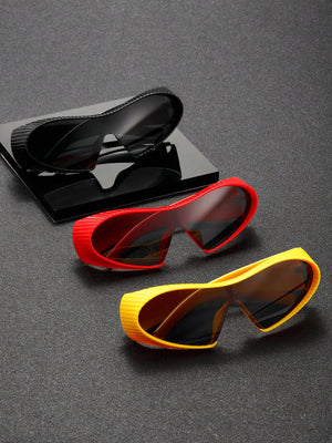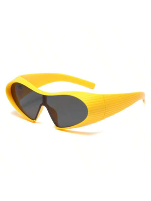1pc Men's Avant-Garde Exaggerated Abstract Frame Fashion Glasses, Futuristic Large Connected Frame, European American Street Fashion, Red, Yellow, Silver Colors, For Parties, Football, Basketball, Baseball Games