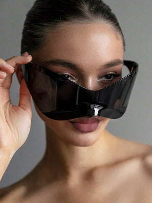 1pc Oversized Futuristic High-Tech Style Connected Cyberpunk Fashion Glasses, Fashionable Eyewear For Women, Cool European And American Style Preppy Style For Back To School Wrap Shape