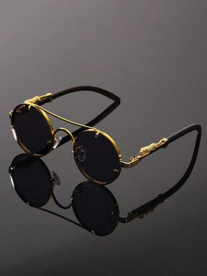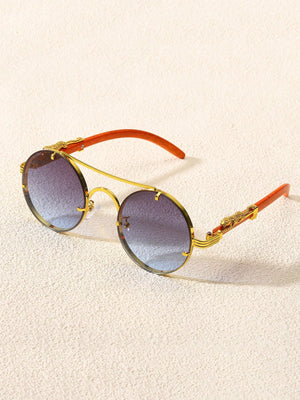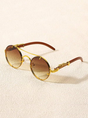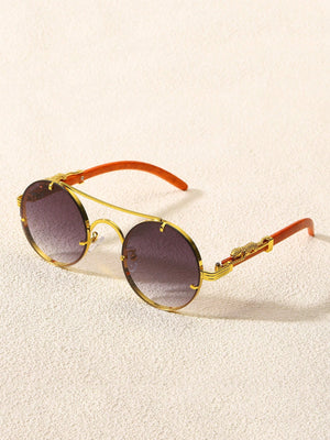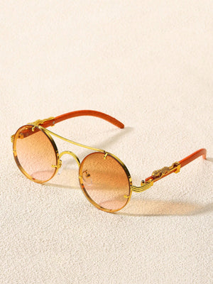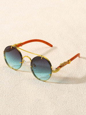 Augonstern 1 PC New Round Full Frame Metal Glasses With Leopard Decor, Minimalist & Elegant, Fashion Eyewear